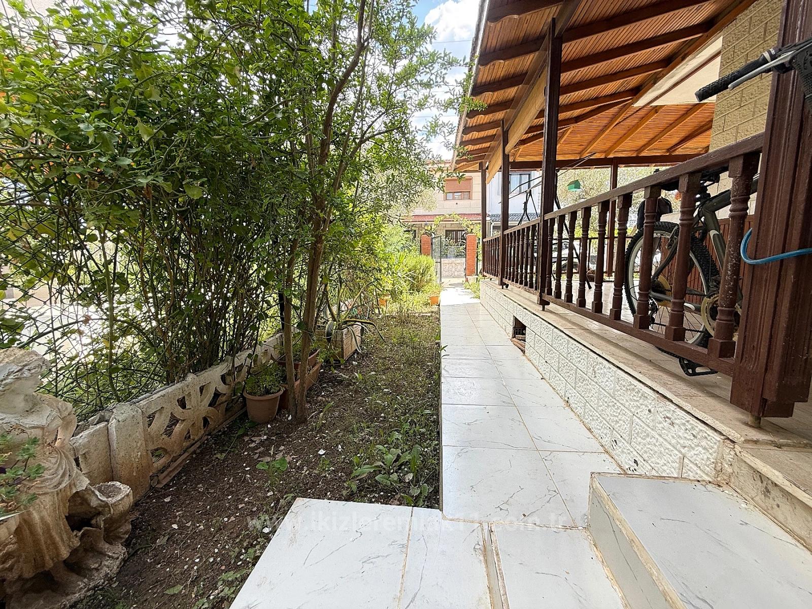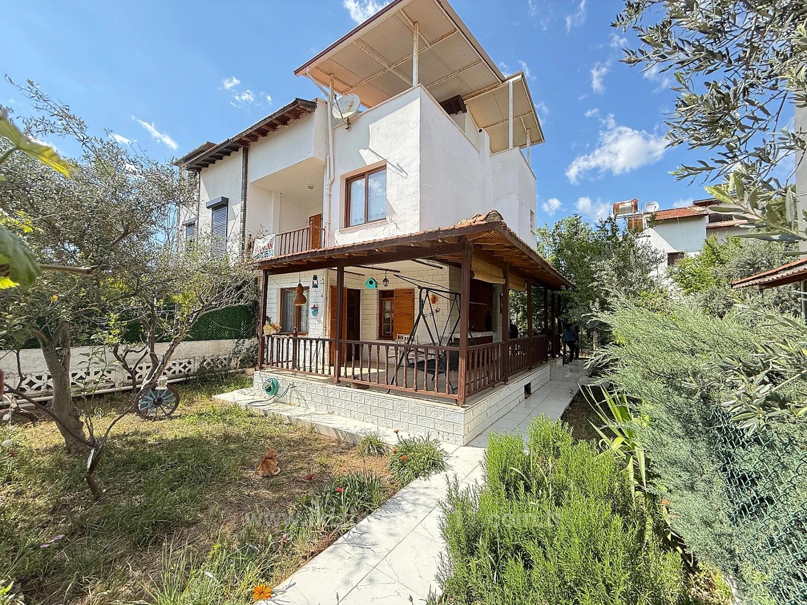 From Ikizler Real Estate, a 3+1 villa with a garden for sale in Izmir Seferihisar Urkmez Doganbey, 500 meters from the sea, requiring no renovations.
